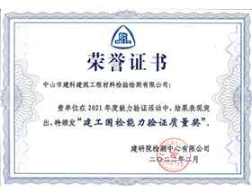 广东省建设工程质量安全检测和鉴定协会及中山市建筑业协会会员单位,兼任中山市建筑业协会检测分会副会长单位。公司连续荣获企业信用评价AAA信用等级和广东省“守合同重信用”企业称号。通过ISO9001质量管理体系、ISO14001环境管理体系、ISO18001职业健康安全管理体系认证。